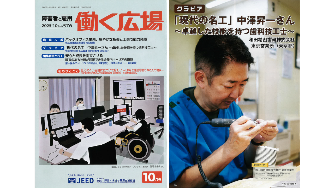 障害者雇用事業所の職場ルポ等最新の雇用事例を中心に、身近な障害者雇用問題を取り上げた事業主向けの啓発誌 『働く広場』(独立行政法人高齢・障害・求職者雇用支援機構発行)の「グラビア」に、当社東京ラボの中澤 昇一が掲載されました。
