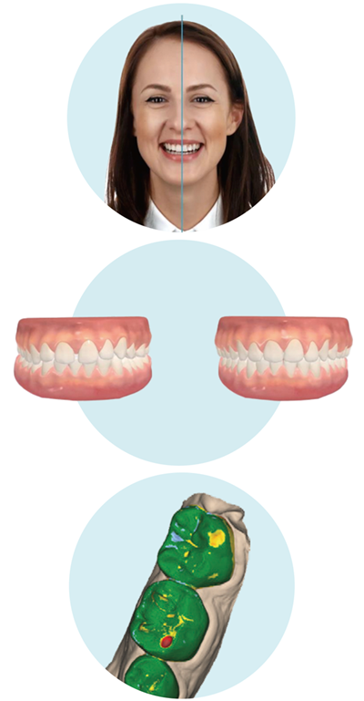 - TRIOS5は口腔内蛍光スキャン技術と色分け表示機能を使用した初期う蝕のデジタル診断が可能です。